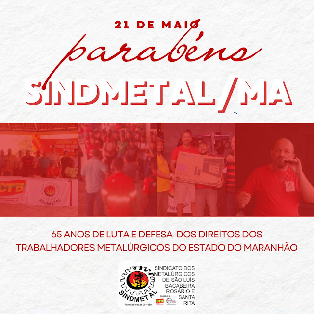 NOTA: 21 DE MAIO - ANIVERSÁRIO DO SINDMETAL/MA